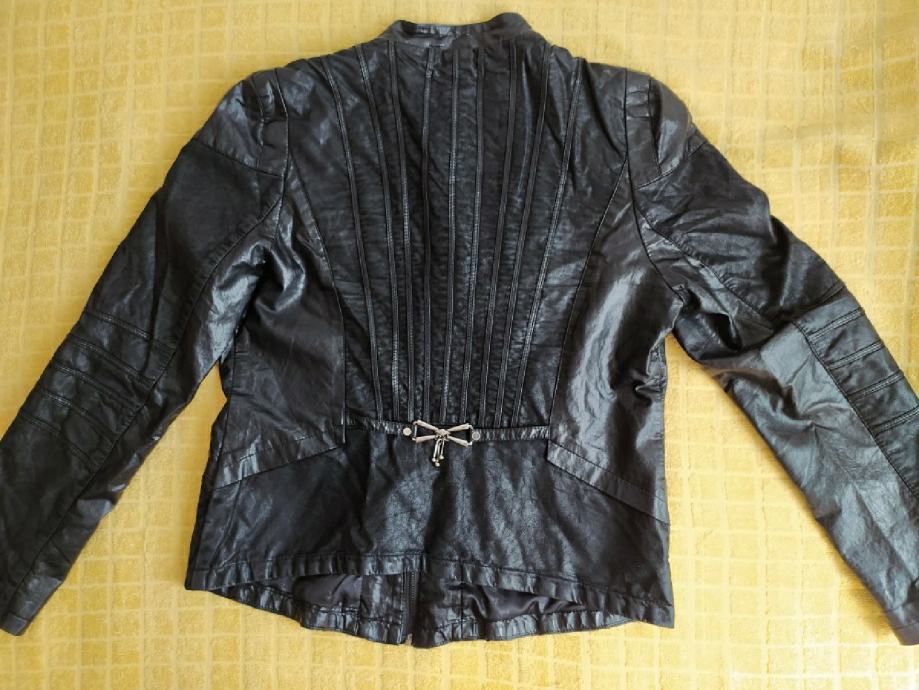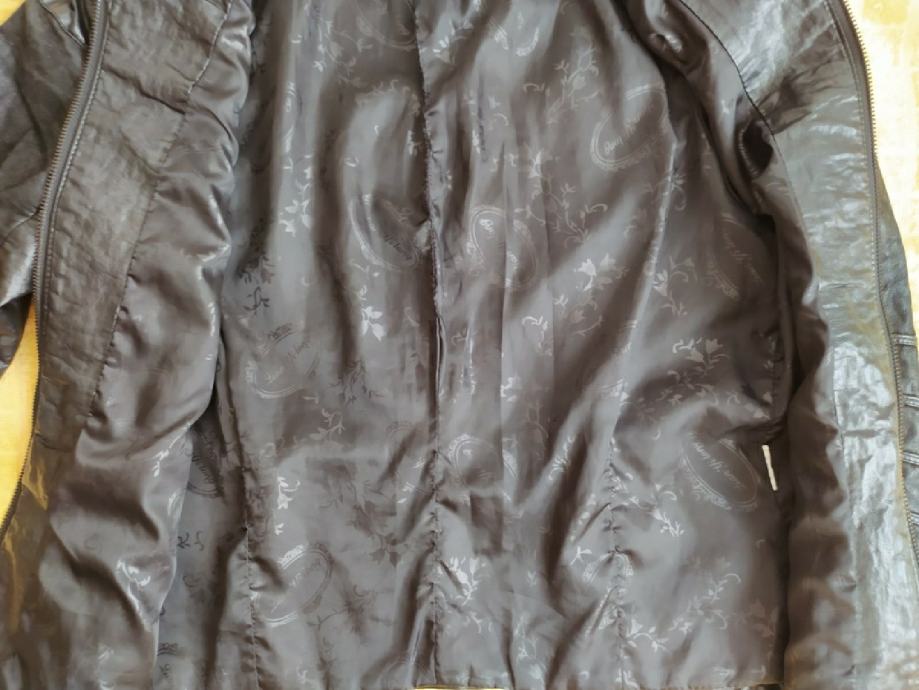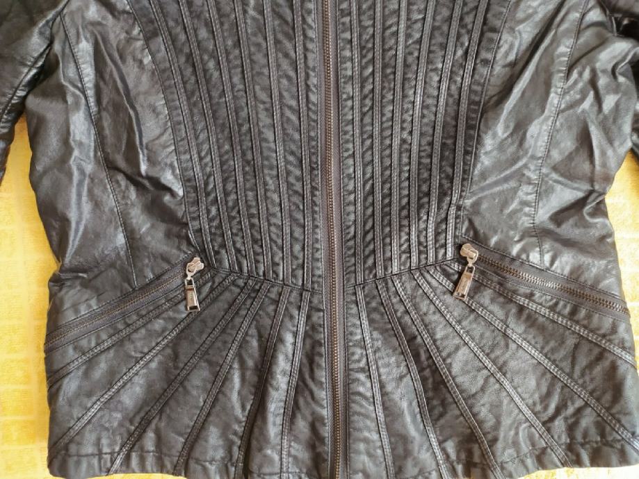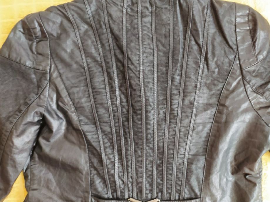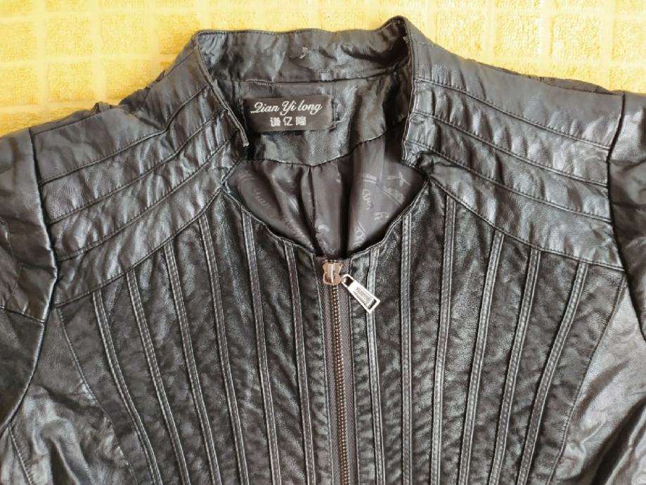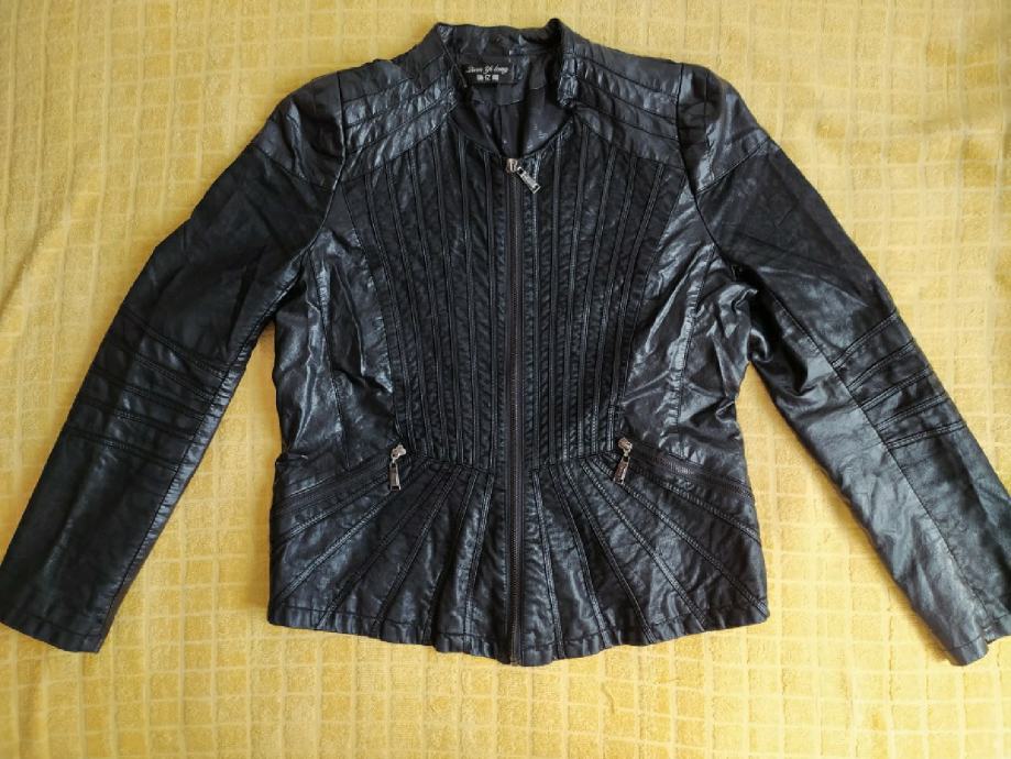 Jakna ženska "Liam Yilong" vel. 42, crne boje. Kopćanje na zatvarač. Jakna ima dva džepa s vanjske strane na zatvarač i dva džepa s unutarnje strane. Vanjski materijal koža sintetika, unutarnji postava poliester. Jakna je elegantnog decentnog kroja. Odlična "neutralna" crna boja pa ju možete kombininrati na sve druge boje odjeće... Praktična lagana jakna za proljeće ljeto jesen. Dužina 65cm, širina 47cm, ramena 42cm, rukav 62cm. Atraktivna jakna materilajom i kvalitetom i bojom i designom!