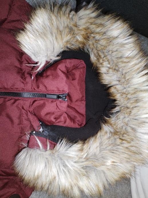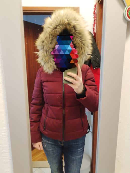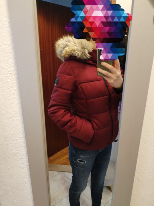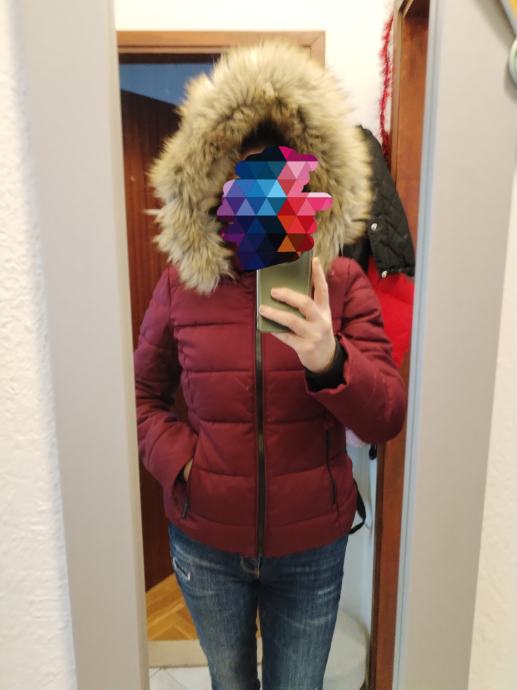 Jakna kratka tamnocrvena velxs,ali je zapravo za S. Kapuljača s eiato može skinuti. Odlično stanje.