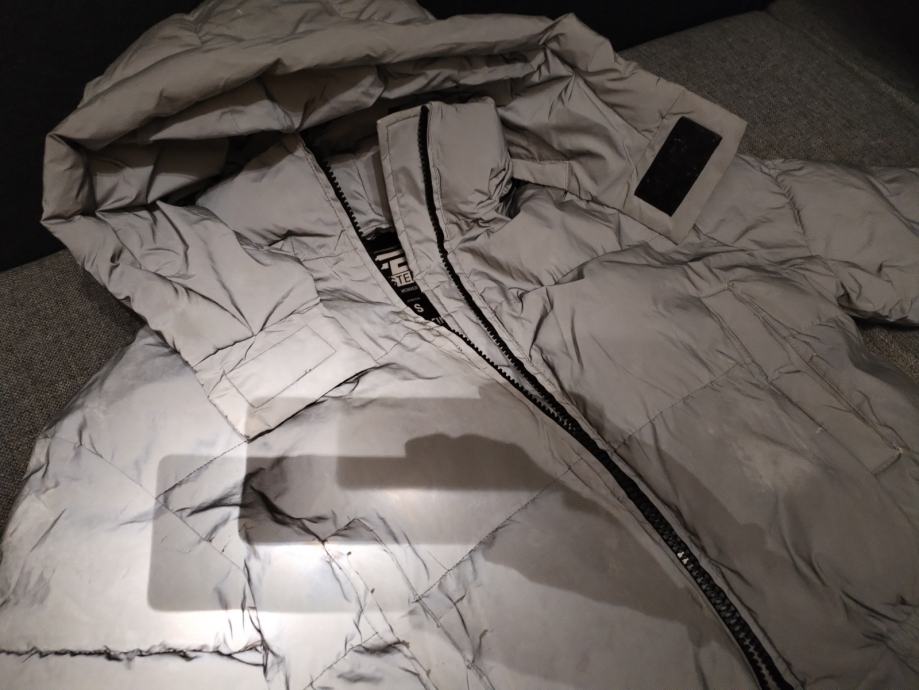 Jakna siva, navečer svijetli, florescentna. Nju poklanjam, može se još nosogi navečer na mjestima je ispucan materijal, vidi se jedino skroz izbliza.