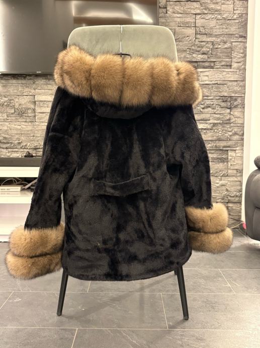 Elegantan crni kaput od alacantre ukrašen luksuznim lisičjim krznom na kapuljači i rukavima. nikad nošen i u savršenom stanju. Moderan kroj s pojasom naglašava liniju tijela i savršen je dodatak zimskoj garderobi.