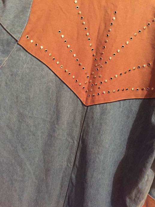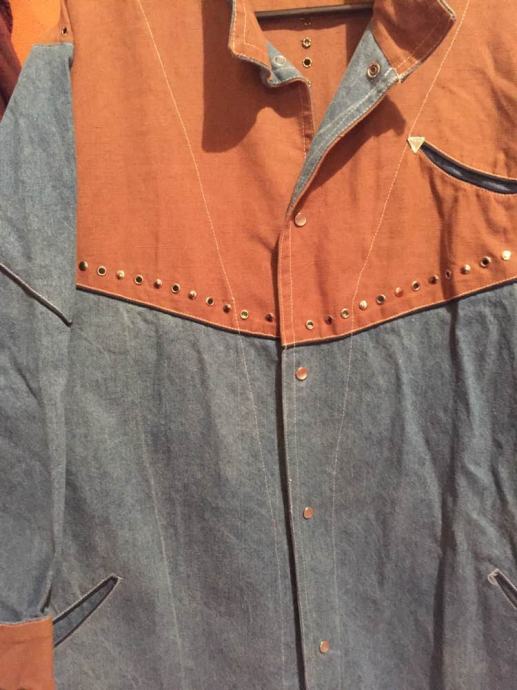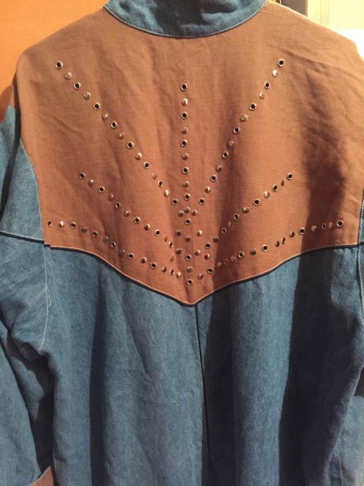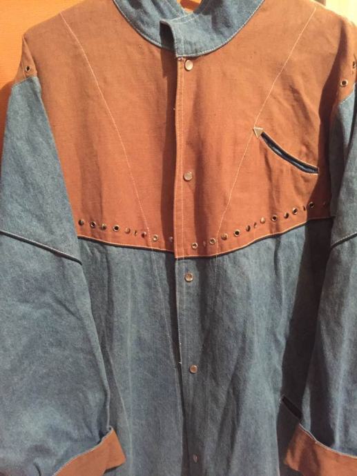 Efektan oversize dugi baloner kaput jakna sa aplikacijom i zakovicama..western style...neobičan originalan dvobojni model trapera...nenošen..vel.L-XL...slike s neta kao primjer kombinacije..