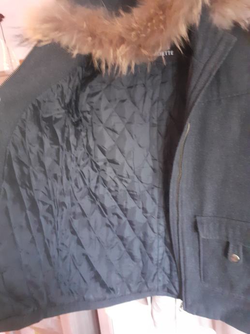 Vuna 50% sastav, pravo krzno rakun na kapuljaci (navedeno na etiketi)