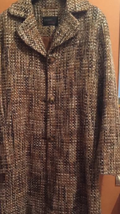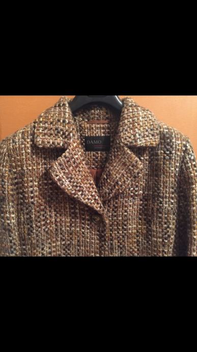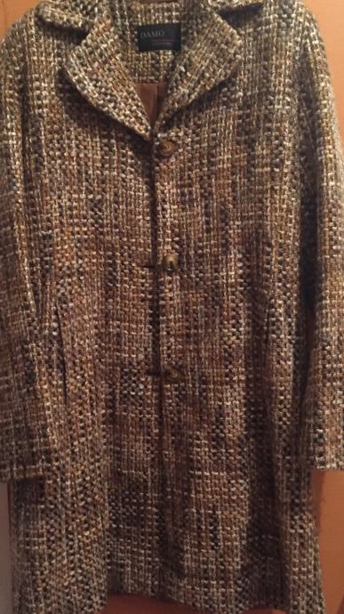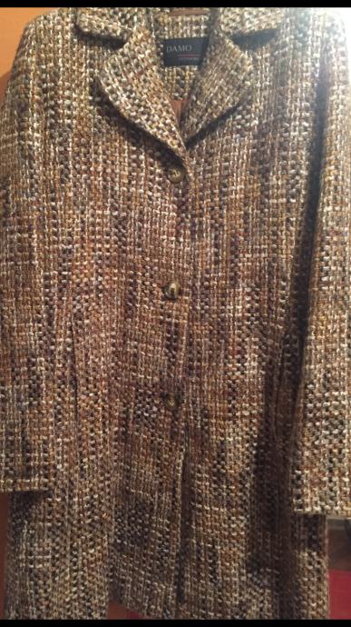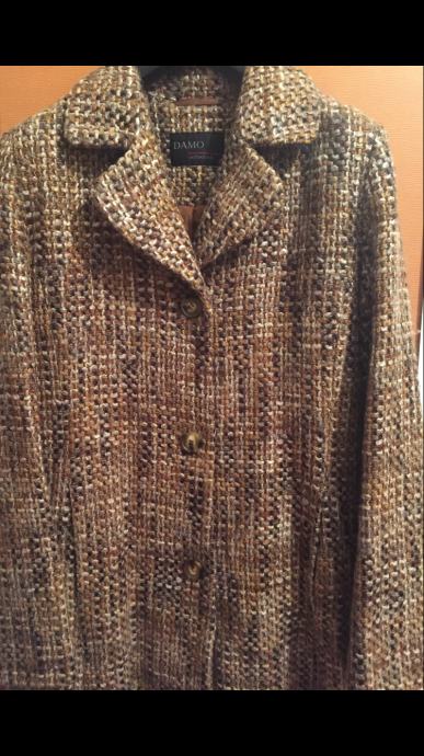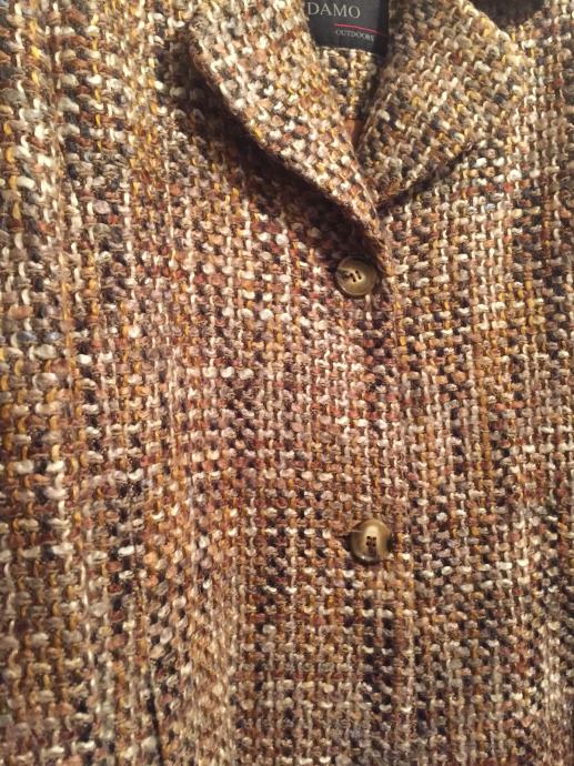 Efektan kaput od kvalitetnog bukle tvida pastelnih smeđih žuto oker i bež nijansi...jednoredno kopčanje ,oversize kragna..vrlo mekan i udoban..mix vune...saten podstava..vel.42/44..retro style....kao nov!