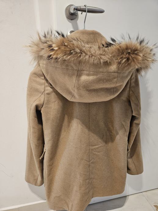 Prodajem rabljeni bež kaput brenda Max&Co s prekrasnom kapuljačom od prirodnog krzna, veličine 36. Elegantan model s klasičnim kopčanjem, idealan za zimske dane.