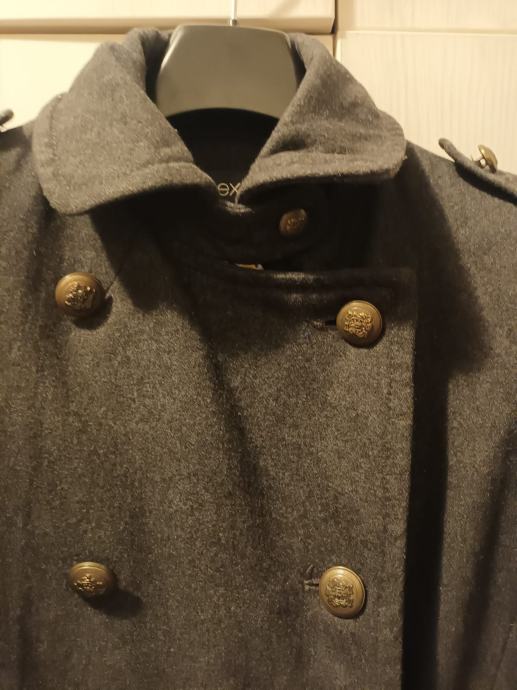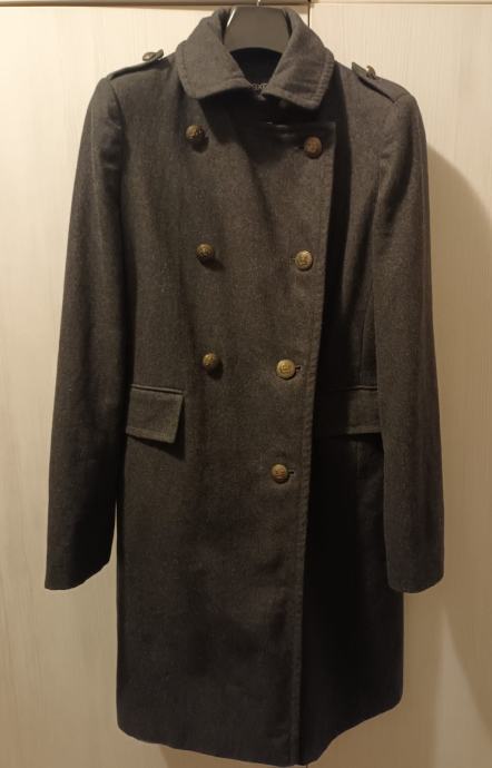 Antracit sivi, vuneni kaput, M/L, duljina 96 cm( mjereno po sredini leđa , bez kragne)
