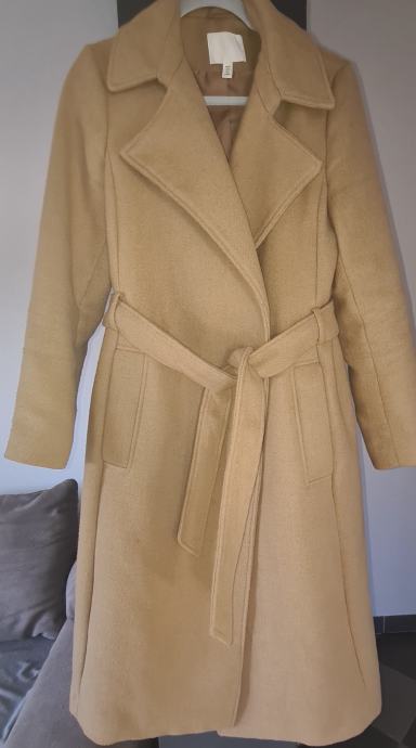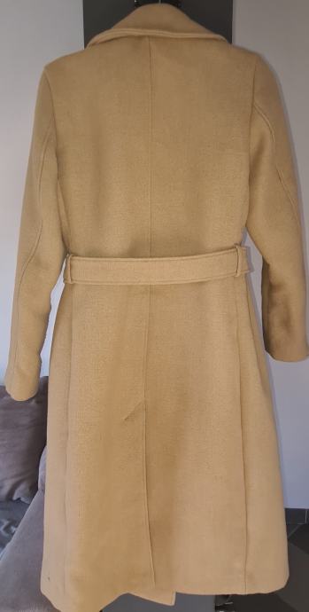 Elegantan bež kaput u veličini 36, potpuno nov bez etikete. Klasičan model s pojasom i džepovima savršen za hladnije dane. Materijal je mekan i ugodan za nošenje, a kroj pristaje svakodnevnim i svečanijim prilikama.
