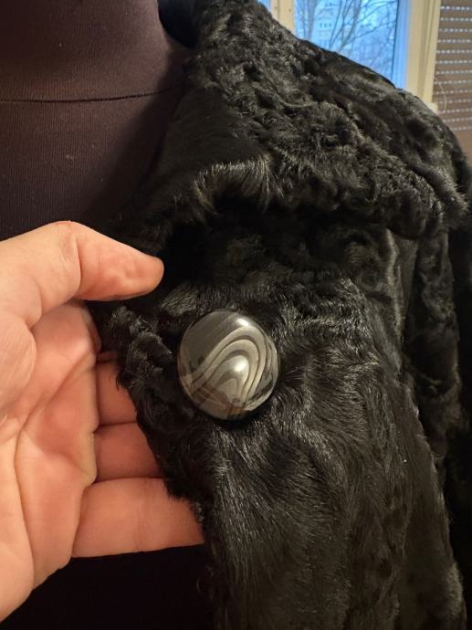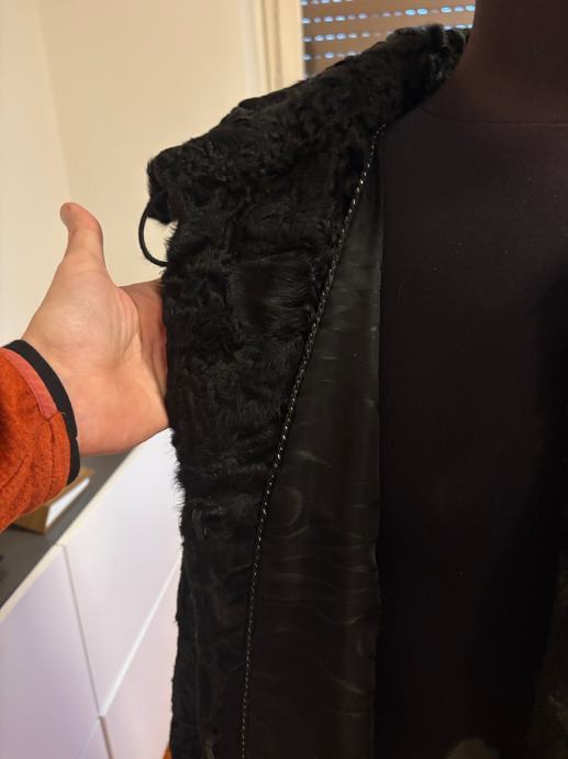 Prodajem ručno rađeni, elegantni potpuno očuvani crni ženski kaput od perzijske ovce klasičnog kroja. Broj 44/46. Krzno je kvalitetno s prepoznatljivim uzorkom (kao sto se vidi na slici). Potpuno je funkcionalan. Mozete ga dati na procjenu.