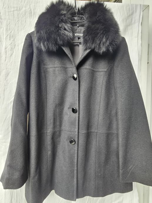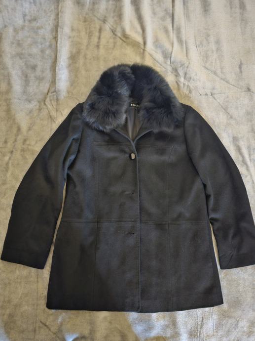 Kaput, jakna ženska, crne boje, okovratnik od krzna koji se može skinuti