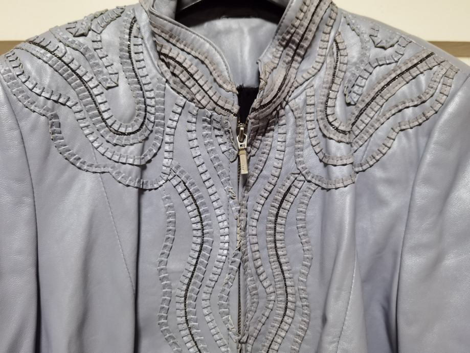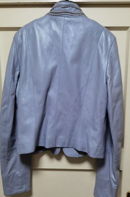 NOVA KOŽNA JAKNA boja lavande, dobivena na poklon, broj ne odgovara.