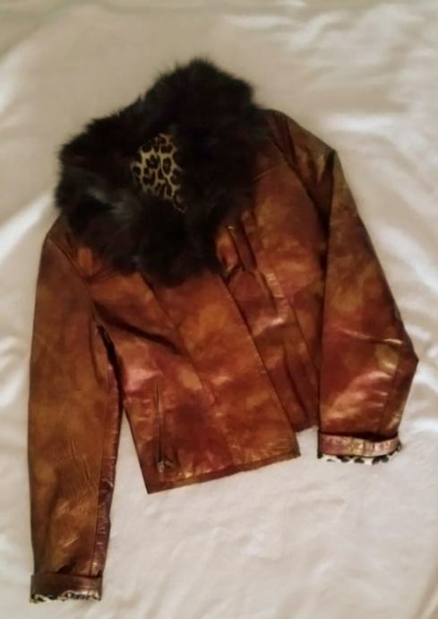 KOŽNA JAKNA S KRZNENIM OKOVRATNIKOM