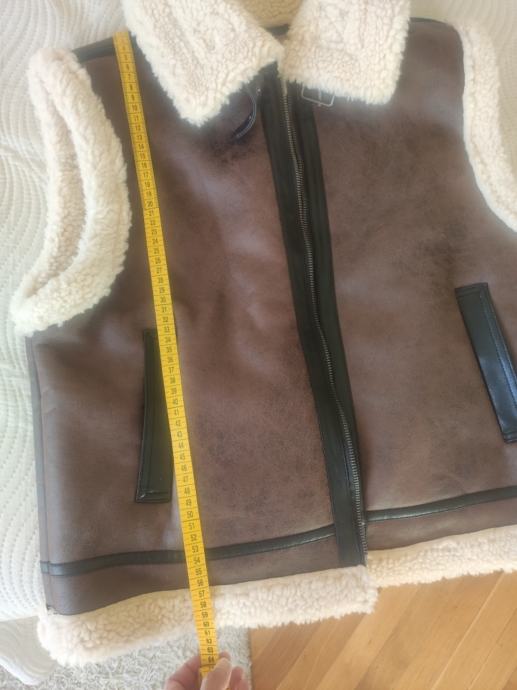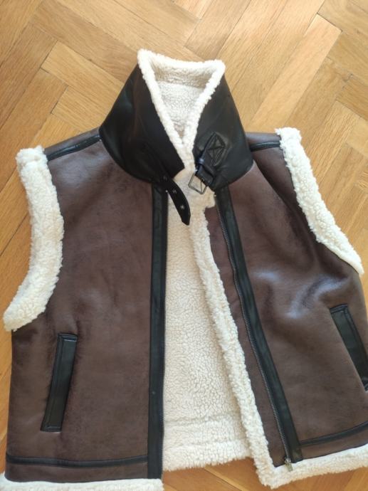 Prodajem H&M topli kožni prsluk od janjeće kože. Dugačak otprilike 60 cm, u struku širok 55 cm, u ramenima 50 cm. Vrlo topao, ugodan i atraktivan. Bez oštećenja.