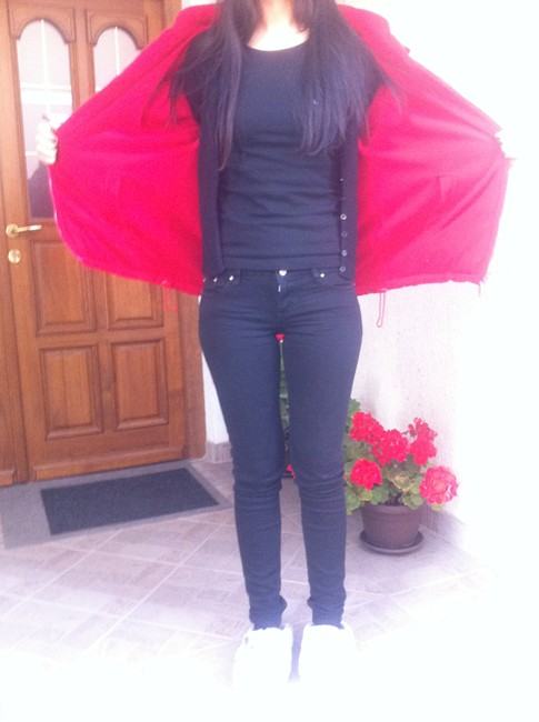 Prodajem tamno crvenu jaknu s kapuljačom.