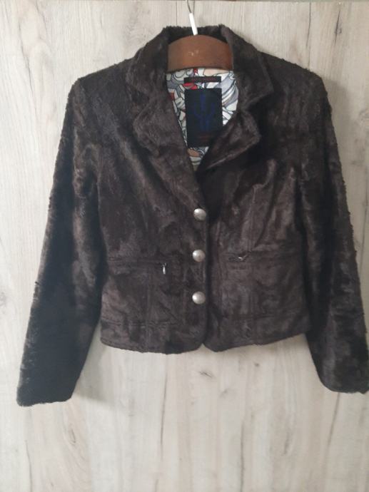 Kvalitetna ,krača, krznena , tamno smeđa jakna