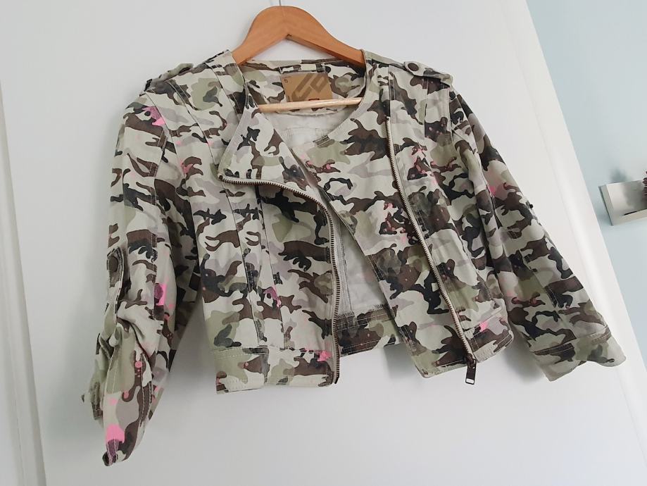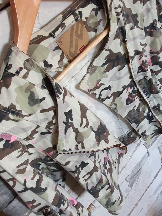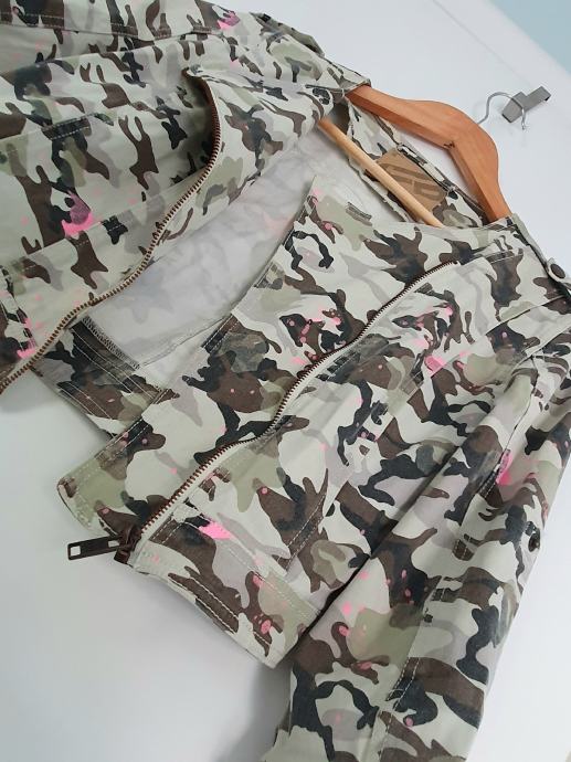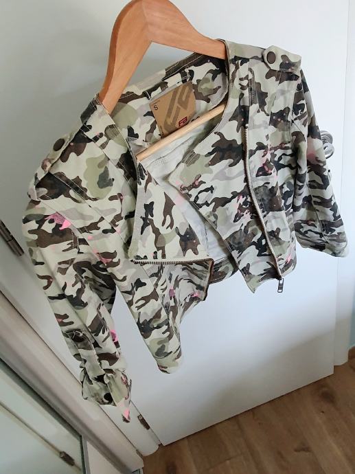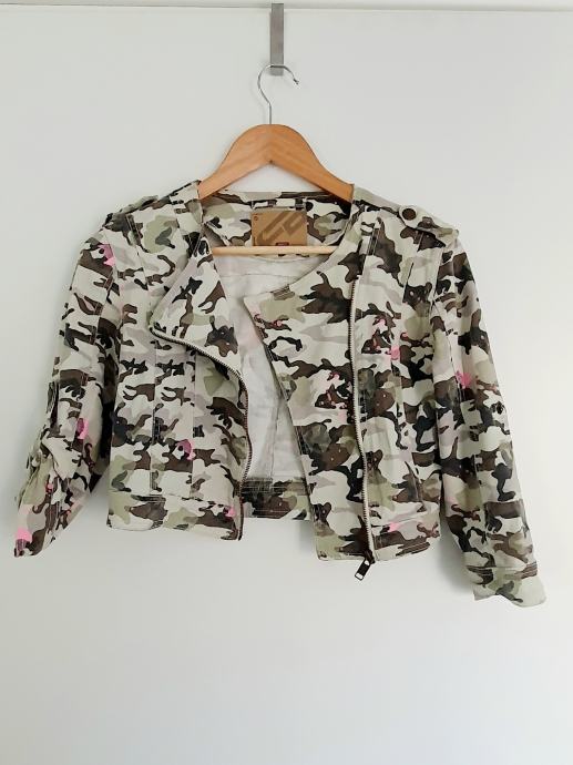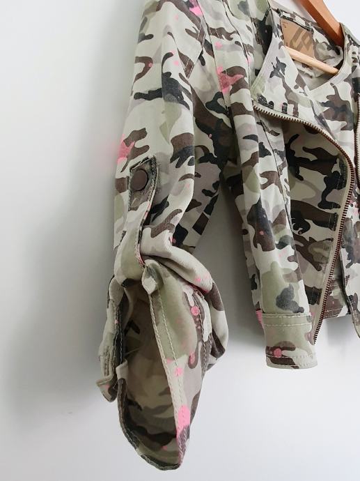 FB Sister jakna lijepih isprano maslinastih i smeđih tonova uz dodatak pink boje.
