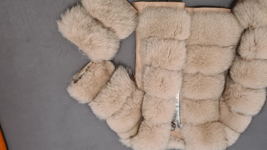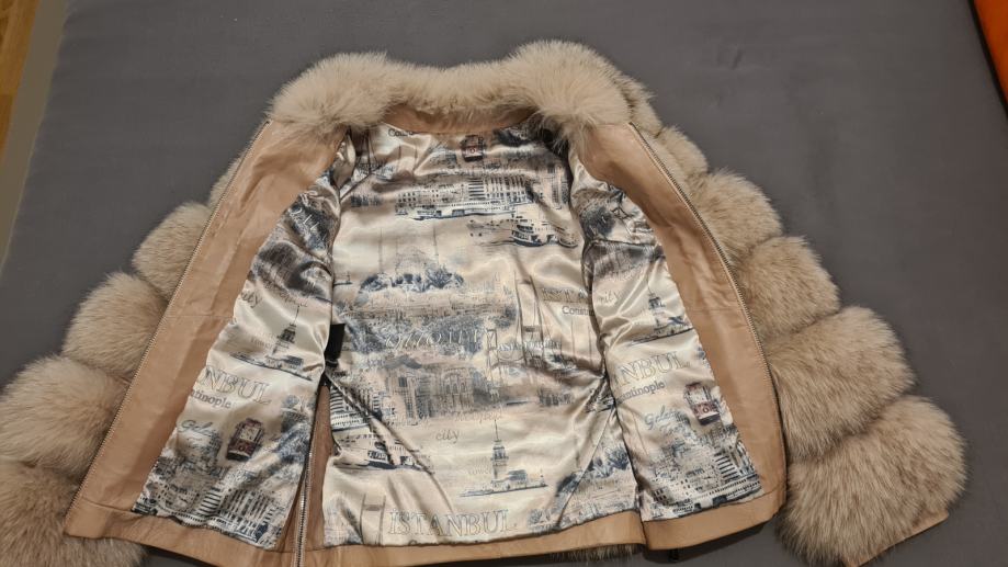 Bundica nošena par puta, kao nova. Prva vlasnica . Krzno lisice. Oko krzna koža. Veličina M, 36/38. Boja puder roza.