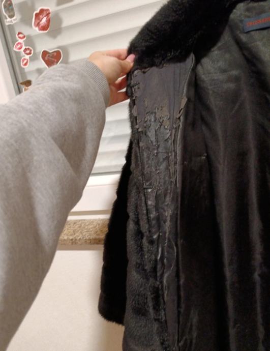 Prekrasna bunda, izvana savrsena, ali sa unutrasnje strane uz sami rub bunde se oljustio tanki sloj kože, što se može oljustiti četkicom, i samo stoga ova cijena.