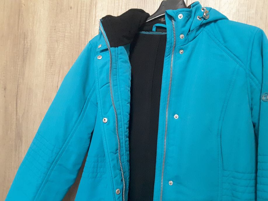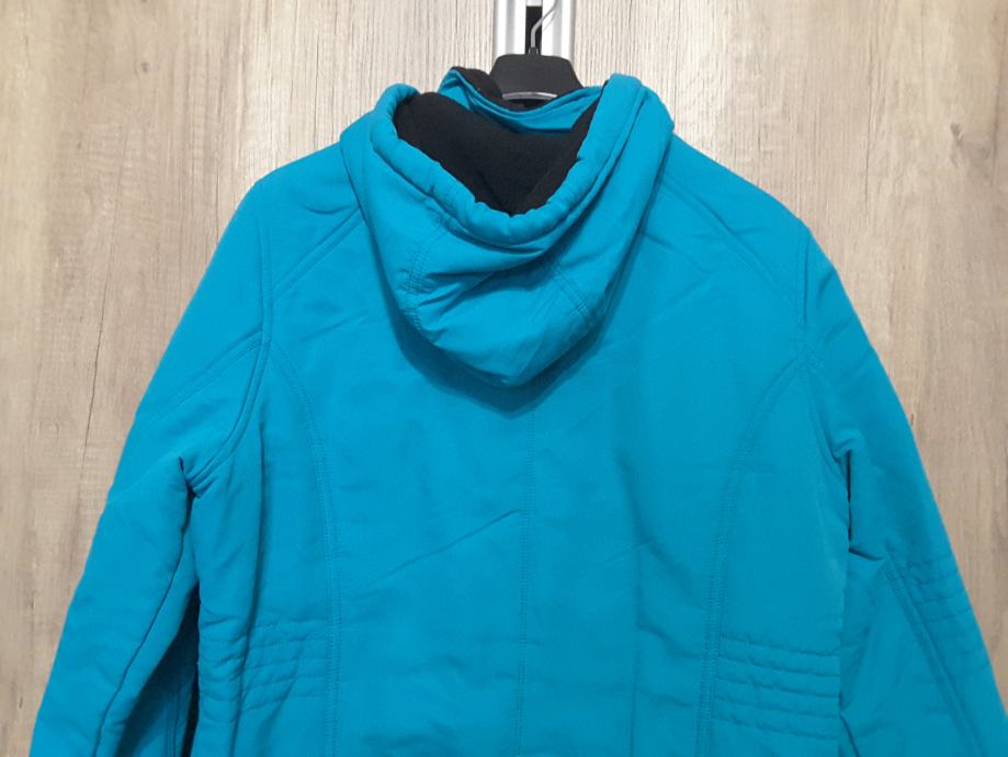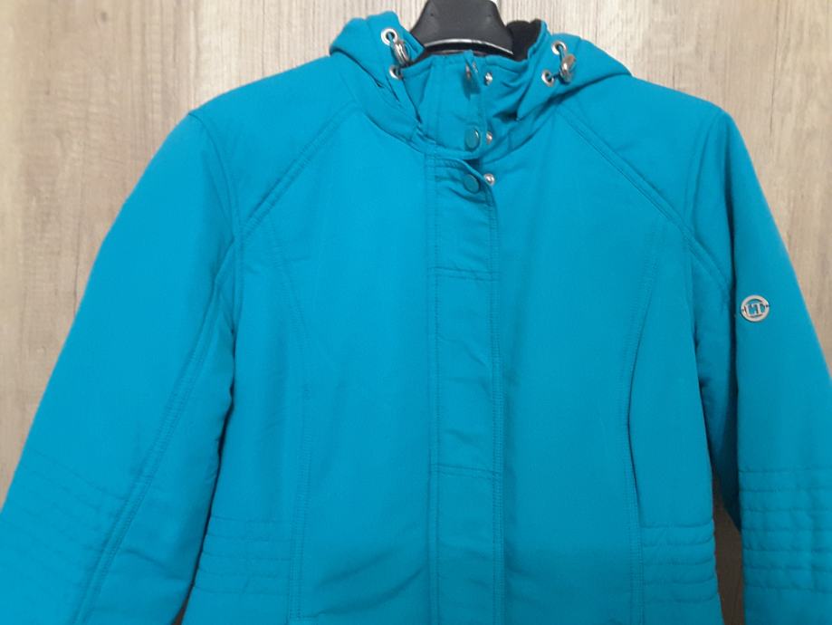U odličnom stanju, tirkizna, topla jakna sa kapuljačom.