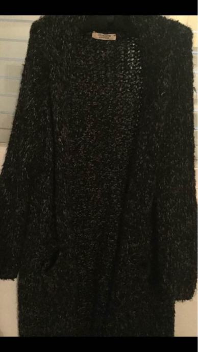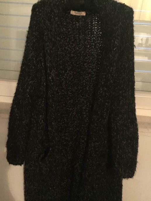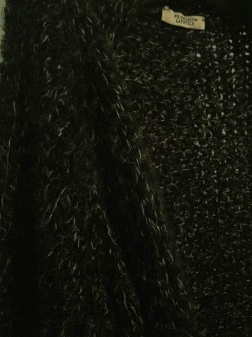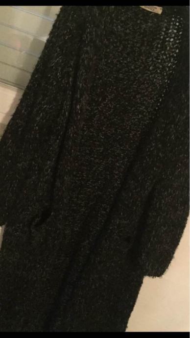 LIPSTICK Collection moher čupavo pletivo ..dulji maxi kardigan oversized..do malo poviše gležnja cca..sa džepovima....toplo mekano i čupavo pletivo ..crno pletivo sa tankim lagano srebrenim nitima...vrlo mekano na dodir..vel.M/L..nenošeno,slika s neta kao primjer modela kardigana