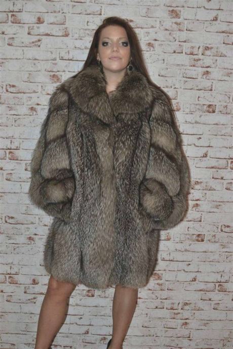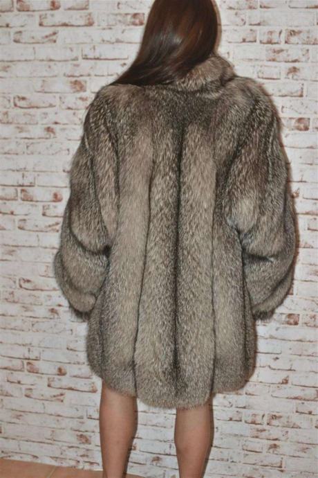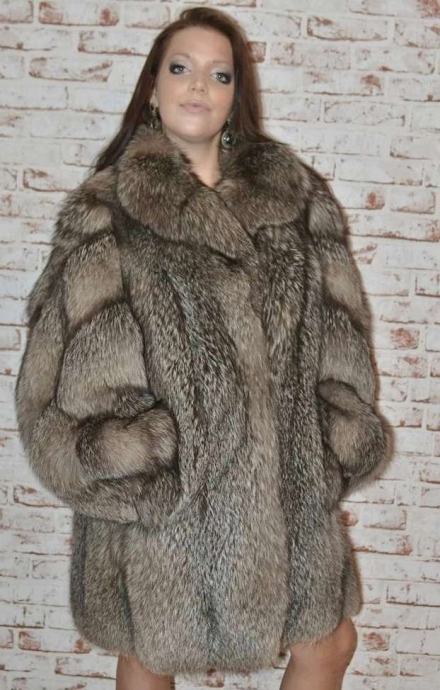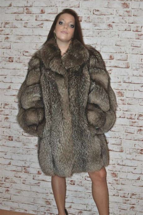 Luksuzna bunda od srebrna lisice prirodno krzno Saga Fox