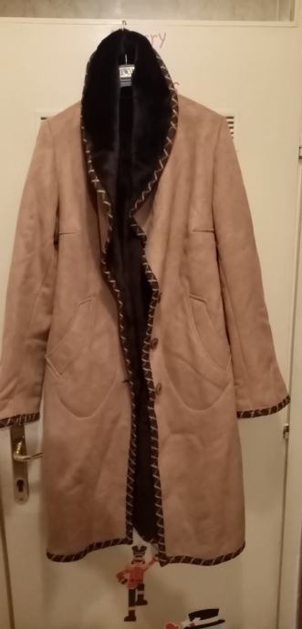 Prije kvalitetan ugodan kaput boje pudera od podatnog antilop materijala i tople baršunaste ispune u odličnom stanju