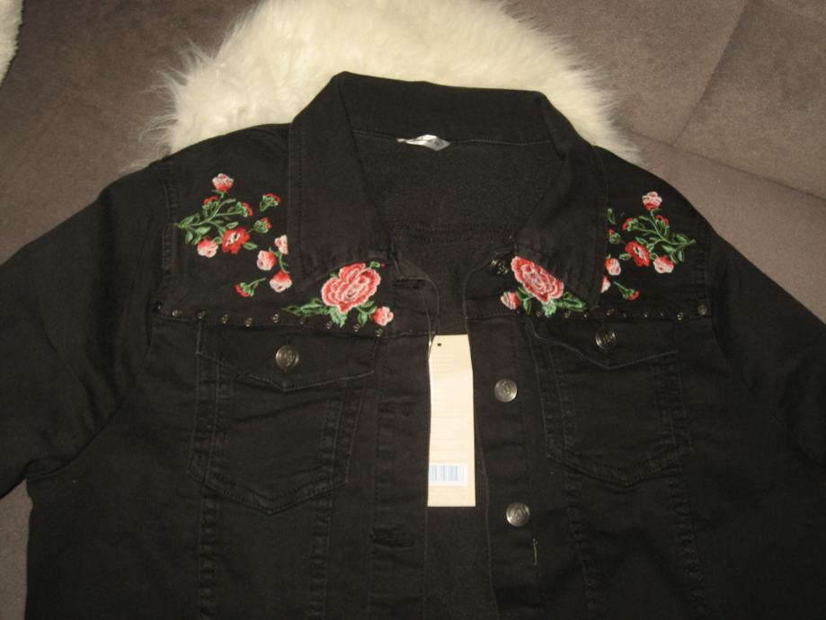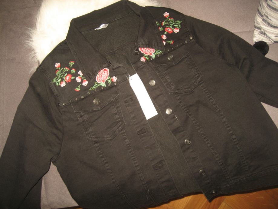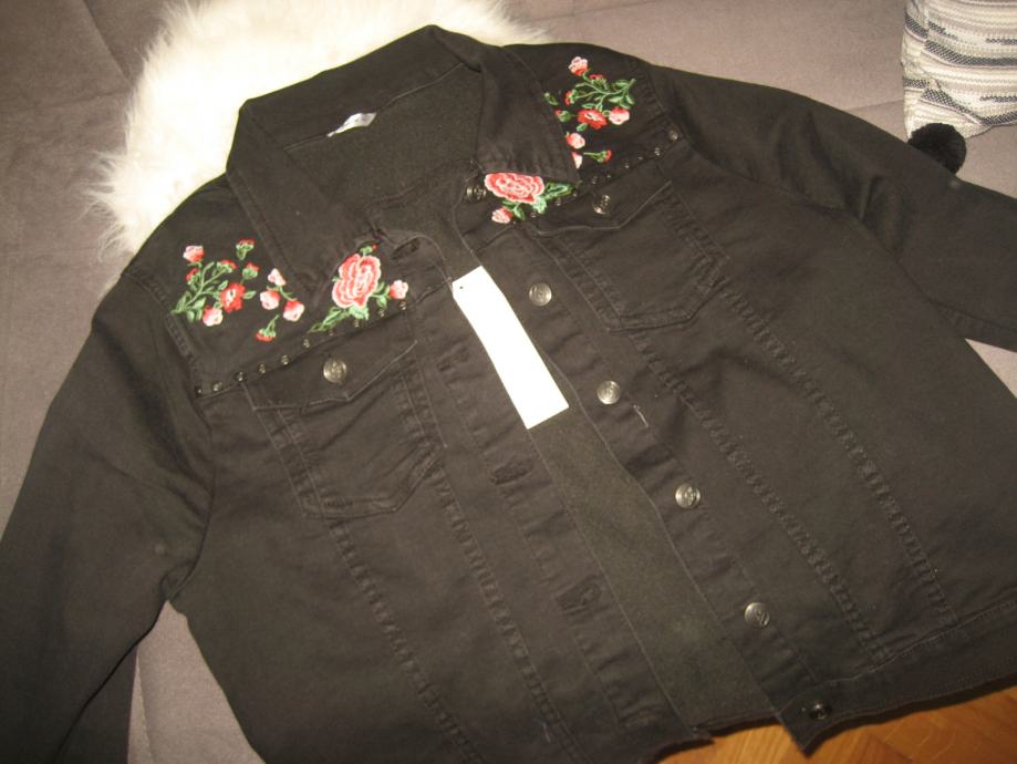 CRNA PROLJETNA JAKNA S CVJETNIM UZORKOM VEL. 40