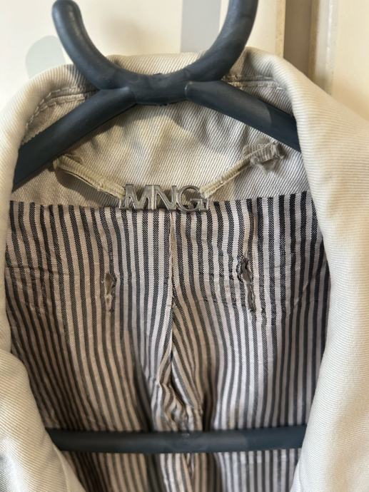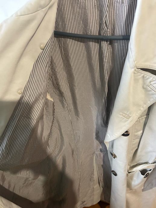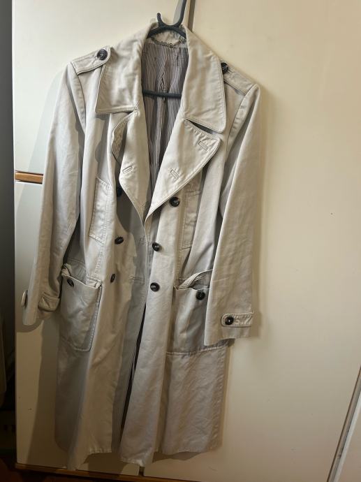 Prodajem Mango (MNG) baloner u bež boji, veličine 44. Radi se o dugačkom, dvorednom modelu od 100% pamuka s reverom, epoletama na ramenima i bočnim džepovima. Postava je od prugaste tkanine. Lagana i udobna jakna pogodna za prijelazno razdoblje.