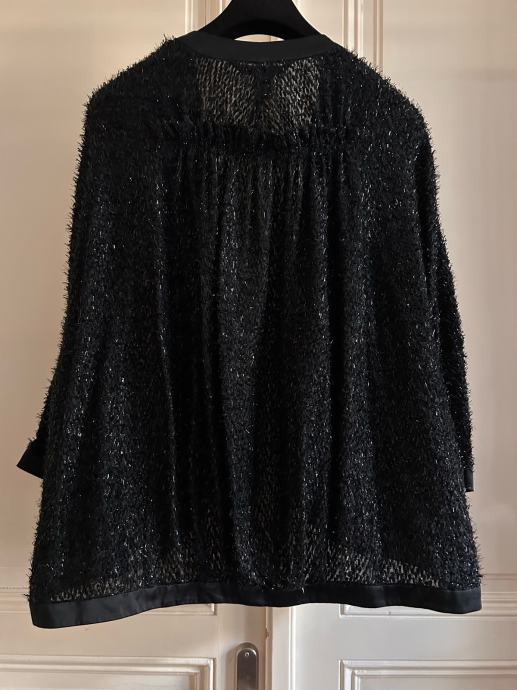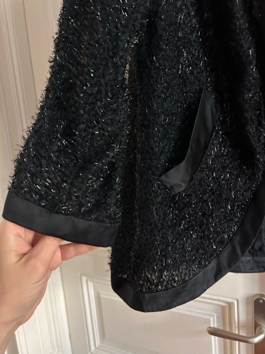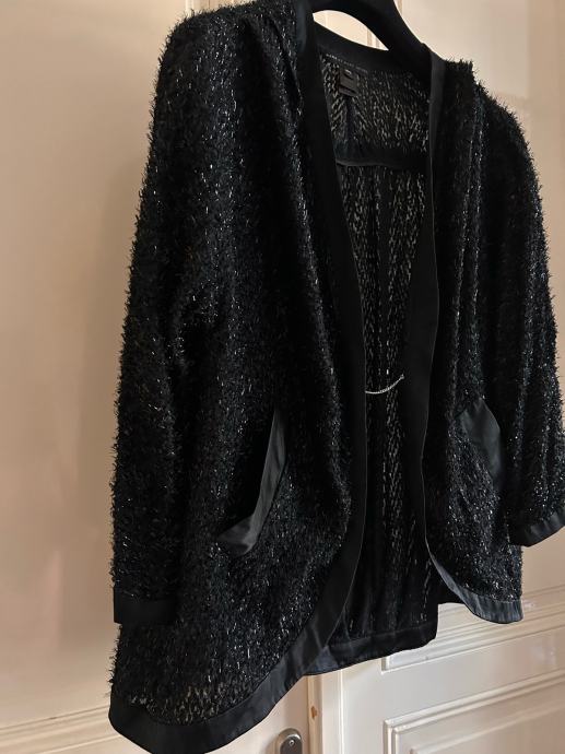 Naziv artikla moze biti plast/kardigan/vestica/jaknica itd - poanta je u multiprakticnom origibal Marc Jacobs komadu nosivom na vise nacina. Crn, decentne lame sjajne trakice u materijalu, satenski porub, funkcionalni dzepovi. Lancic sa gumbima mozete potpuno ukloniti.