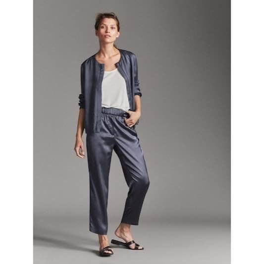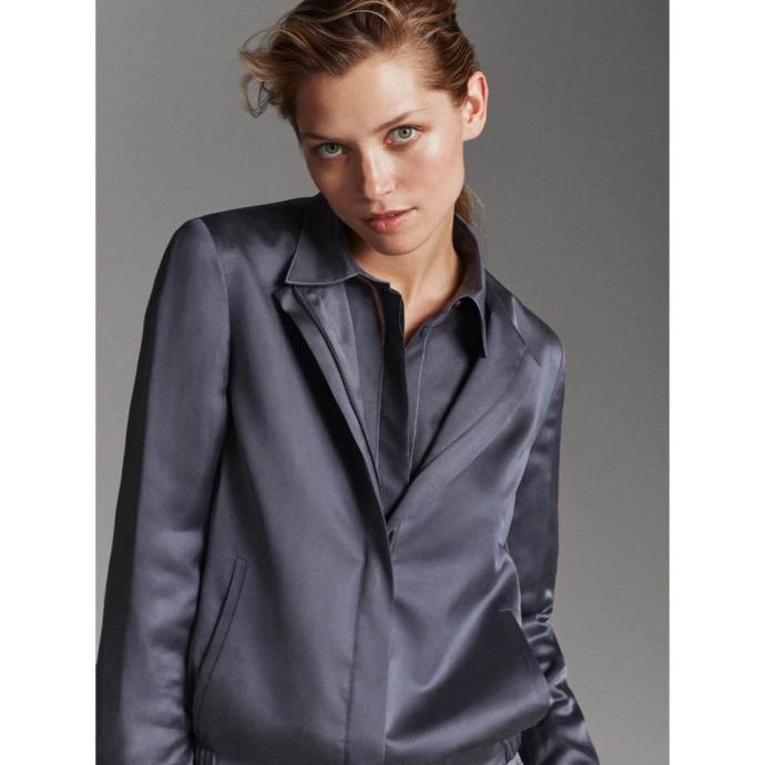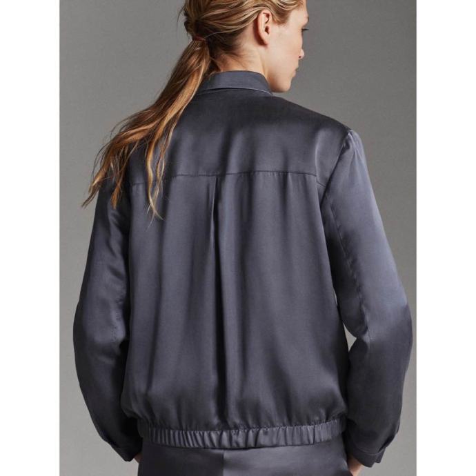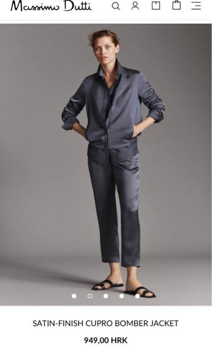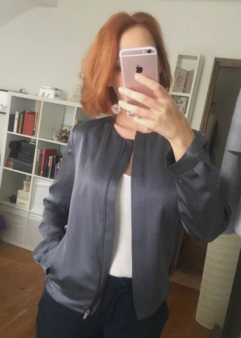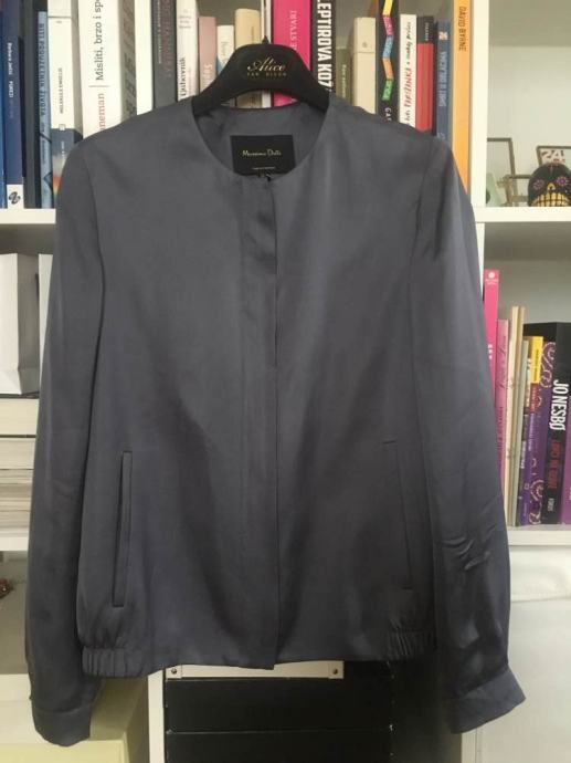 Massimo Dutti prljavo - lila bomber jakna - preugodna, kao svila. Plaćena 949,00 kn. Nikad nije nošena. Veličina je 34 ali je zbog kroja ok i za 36 ali manji. Ramena 37, duljina 56 cm, opseg grudi 94 cm. Na rubu je guma tako da se rasteže.