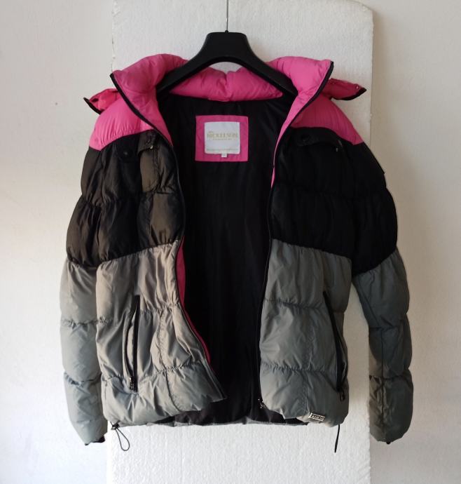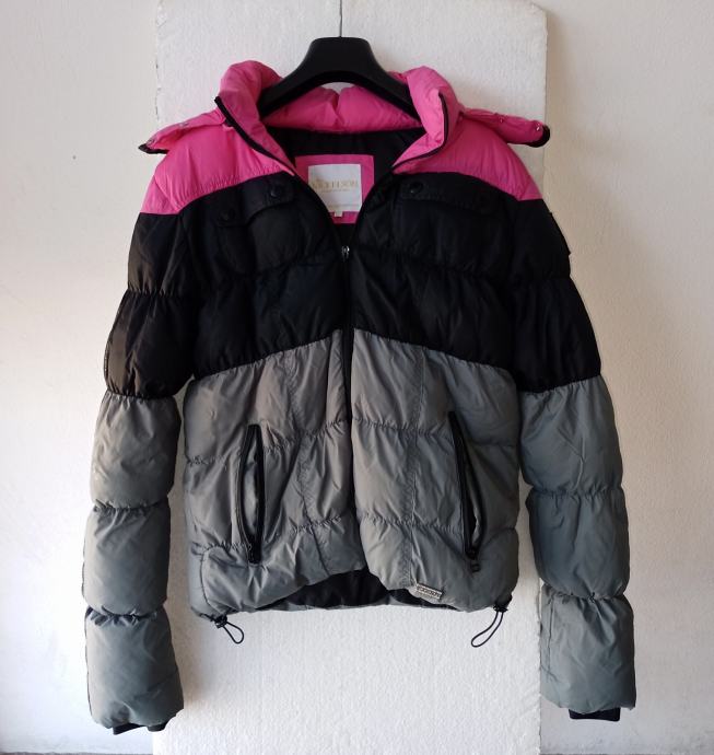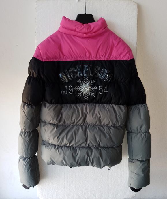 Atraktivna MISS NICKELSON puffer (proštepana) skijaška jakna u 3 boje (ružičasta, crna, siva). Rukavi imaju unutrašnje rukave koji prijanjaju uz ruku. Ima dva bočna (na zipove) i dva gornja (na drukere) džepa. Na dnu ima vrpcu za stezanje. Deklarirana veličina M (opseg prsa 104 cm). Može se nositi i van staze. Nekoliko puta korištena i u stanju ko nova.