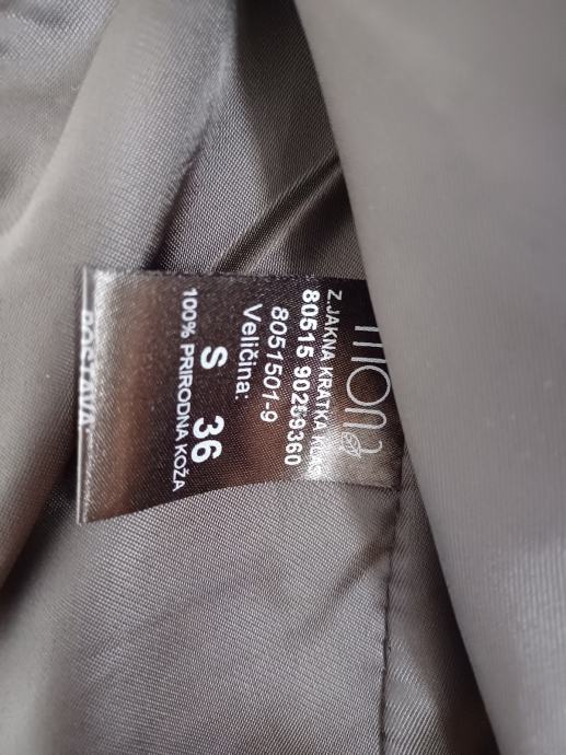 Mona kožna jakna, motorističkog kroja, kopčanje patentnim zatvaračem.