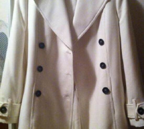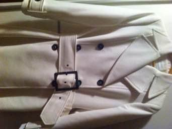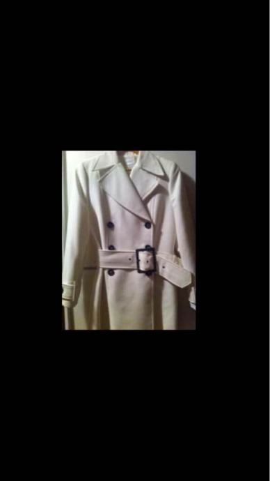 MOTIVI bijeli baloner jakna sa remenom i metalnom kopcom...saten podstava ..vrlo kvalitetan materijal mix viskoza pamuk vuna... ne gužva se...novo!...vel.M-L...slike s neta vrlo slicnog modela ..