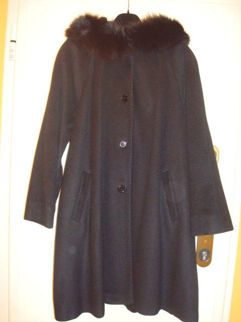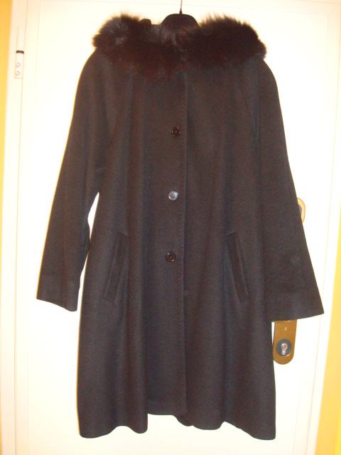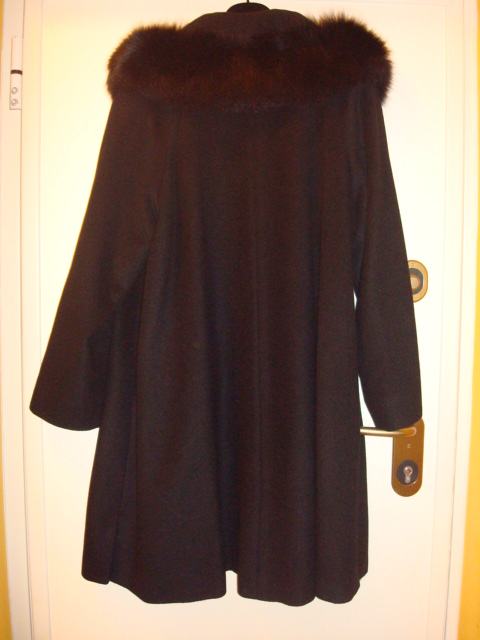 Jako elegantni crni kaput sa krznenim ovratnikom modne marke Mura - Le Ona.