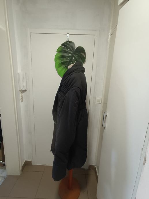 Izuzetno skupa milanska marka Oblique s neobično krojenom jaknom. Teško je i opisati. Zatvori se patentom koji ne ide cijelom duljinom. Nakon toga se gornji dio kopča drukerom. Tada se dobije predimenzionirani veliki ovratnik koji se može koristiti i kao kapuljača. Nesvakidašnja jakna. Na leđima se nalazi i ušiveni pojas tako da se tu jakna sužava. Iako je velika, s dugim rukavima, najbolje je za veličinu 38/40.
