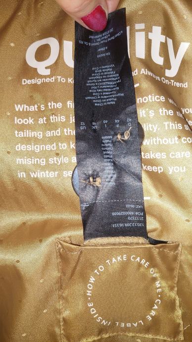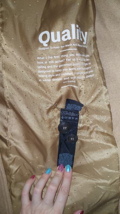 Novo s oliver kaput, veličina 42, no zbog pojasa može ići i na manje veličine te lijepo stoji (ja sam S)