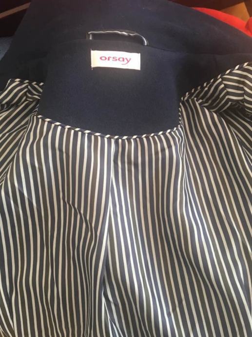Novi i nenošen tamnoplavi kaput Orsay, s ukrasnim remenčićima i gumbima.