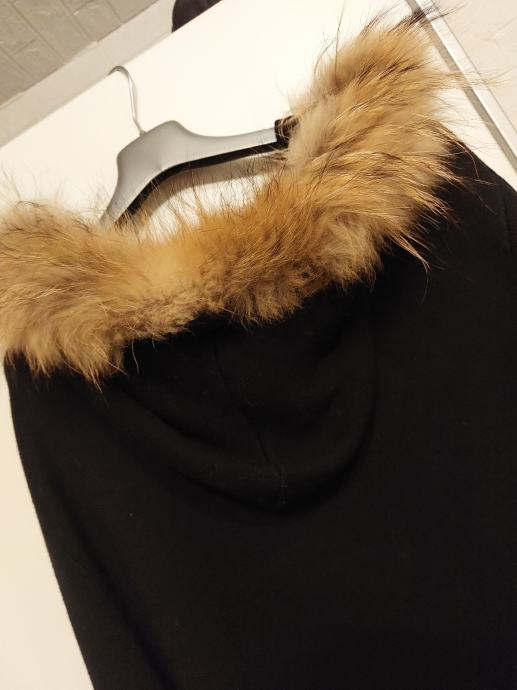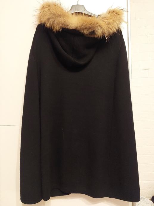Predivna vunena pelerina s pravim krznom na kapuljači. Izrazito kvalitetan materijal i krzno. Jedini nedostatak je opšiv od eko kože orukavlje i rub koji se zgulio, stoga ovako niska cijena, što nije nikakav problem popraviti kod krojačice, no meni samo stoji u ormaru i neda mi se zato popravljati. Inače skupo plaćena....Pa možda nekoga usreći.