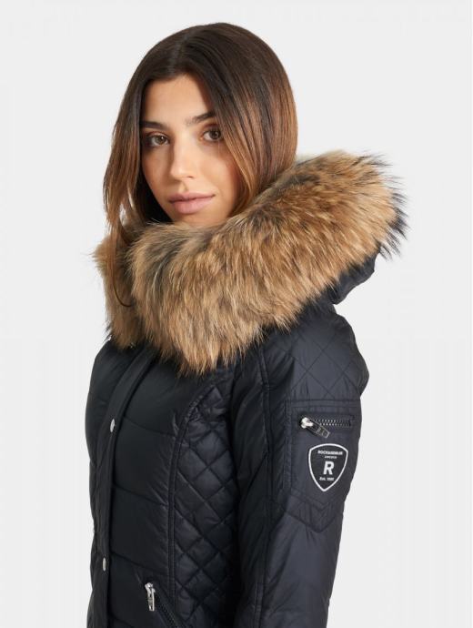 Prodajem toplu zimsku jaknu švedskog branda ROCKANDBLUE. Jakna je punjena paperjem s bogatim rakunovim krznom u nature boji. Jakna prati liniju tijela, atraktivnog je izgleda i zaista topla. Kapuljača se da skinuti kao i krzno. Bez obzira na punjenje, periva je u perilici rublja na 30°C. Jakna je visoke kvalitete, stara 2 godine i u iznimno dobrom stanju. Perje ne izlazi van. U prodaji je nova oko 500 eura. Veličina je 38, ali zbog strukiranosti, bila bi idealna za one koji nose veličinu 36. Prodajem isključivo jer mi je sad malo premala.