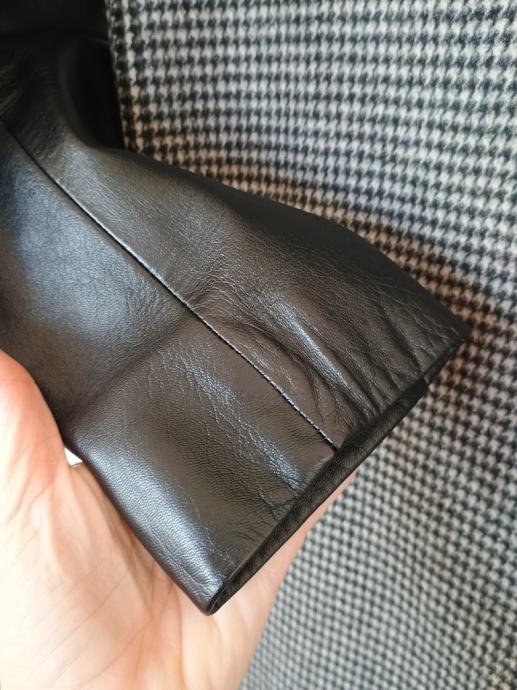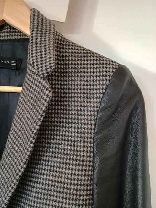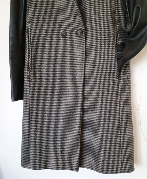 Kombinacija sivkastog pepita dizajna s rukavima od janjeće kože.