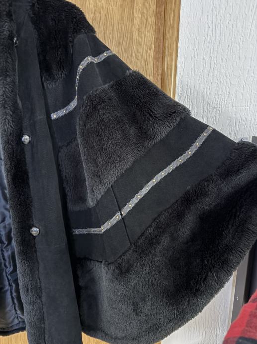 Vanjski materijal kaputa je mješavina prave kože i imitacije krzna.
