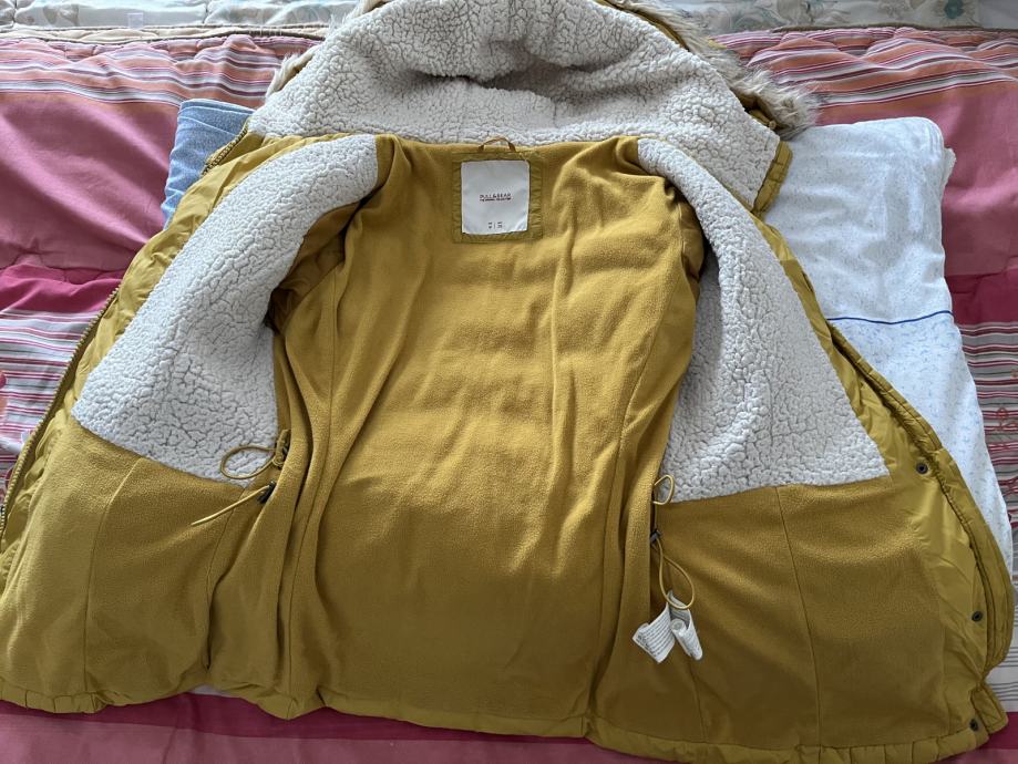 Pull&Bear topla jakna, žute boje, jako udobna i topla, veličina S, iako na njoj piše M, ali ja nosim S i taman mi je. Malo nošena, očuvana.