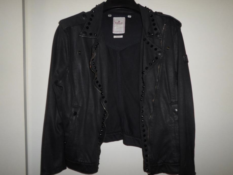 Replay original jakna, od crnog fora materijala sa zakovicama.
