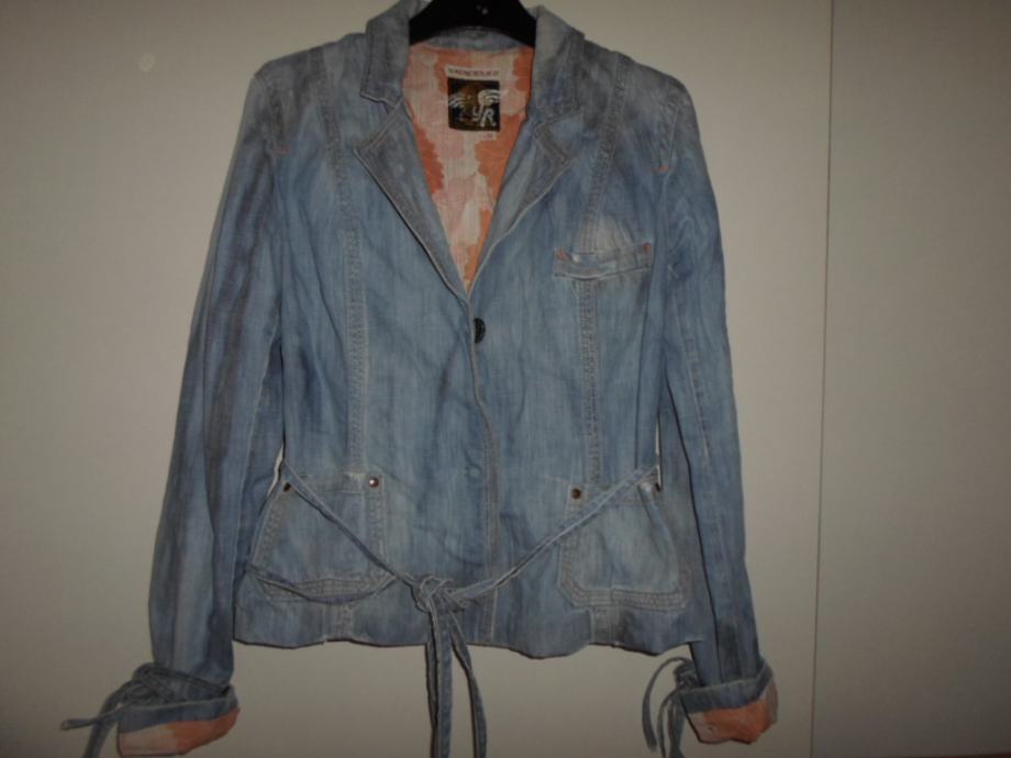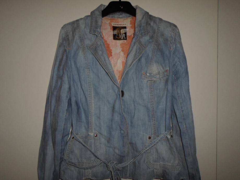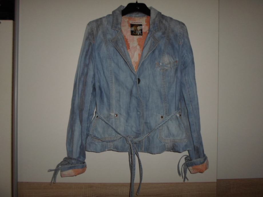 Replay orig. sako / jakna od 100% pamučnog platna po izgledu i dodiru kao od finog mekanog te podatnog svijetlijeg trapera. Sprijeda se kopča na veće skrivene drukere. Trakice na orukavlju koje se vežu. Iste takve duge trakice su i na stražnjem dijelu koje možete vezati sprijeda po želji. Lijepa zagasito narančasta cvjetna podstava koja se vidi kada podvinete rukave. Jakna je plaćena preko 2000kn i u odličnom je stanju, ista kao i kad sam je kupila. Navedena vel.M, može i za S ako volite komotno...