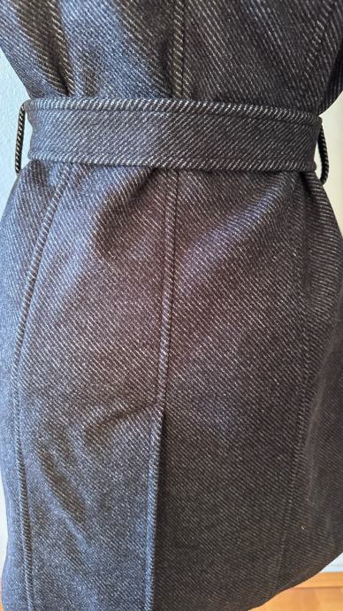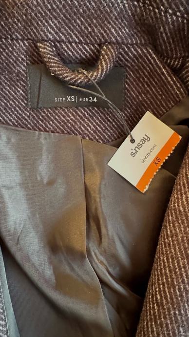 Sinsay predivan sivi zimski kaput od štofa, vel XS, novo s etiketom. Predivan jako fini mekan i mucast na opip, jako kvalitetno napravljen, od materijala, dizajna, boje, predivno se strukira sa pojasom. Dužina malo iznad koljena, predivan uživo, toplo preporučujem!