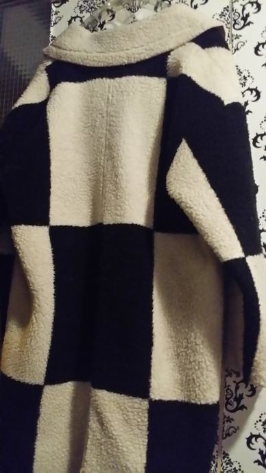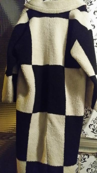 SINSAY CRNO-BIJELI KAPUT SA PREDIMENZIONIRANIM UZORKOM SAHOVSKE PLOCE.