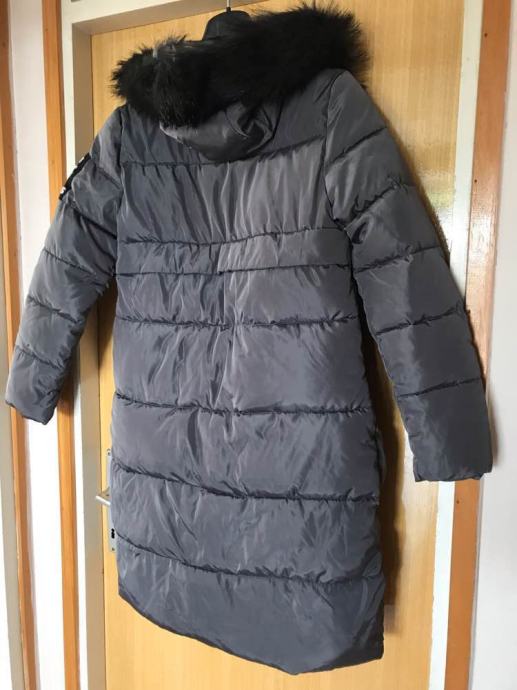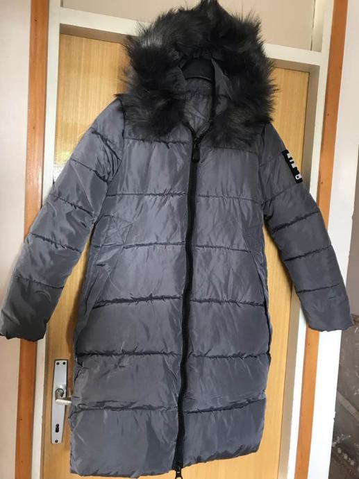 Veličina je XL i XXL ali odgovara našim M/L. Tamno sive boje duljina jakne do koljena.