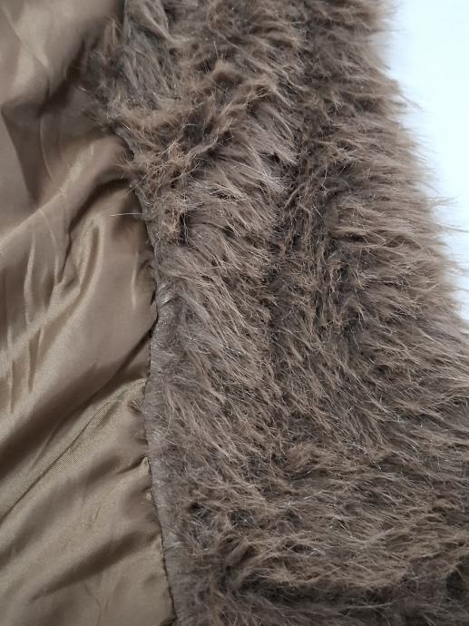 Prodajem prellijepu očuvanu čupavu bundu, smeđe boje, umjetno krzno, proizvedena u Italiji, vel. 38-40. Bunda iznutra ima smeđu svilenu podstavu, marka "New Collection". Bunda je udobna i jako topla. Ima dva rukava s prednje strane i gumbe tako da se može zakopčati. Mjere: dužina 79cm, širina 60cm, dužina rukava s vanjske strane 49cm. Bunda se ne linja i ne gužva.