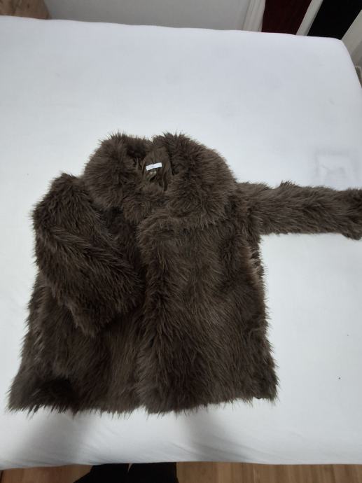 Prodajem prellijepu očuvanu čupavu bundu, smeđe boje, umjetno krzno, proizvedena u Italiji, vel. 38-40. Bunda iznutra ima smeđu svilenu podstavu, marka "New Collection". Bunda je udobna i jako topla. Ima dva rukava s prednje strane i gumbe tako da se može zakopčati. Mjere: dužina 79cm, širina 60cm, dužina rukava s vanjske strane 49cm. Bunda se ne linja i ne gužva.