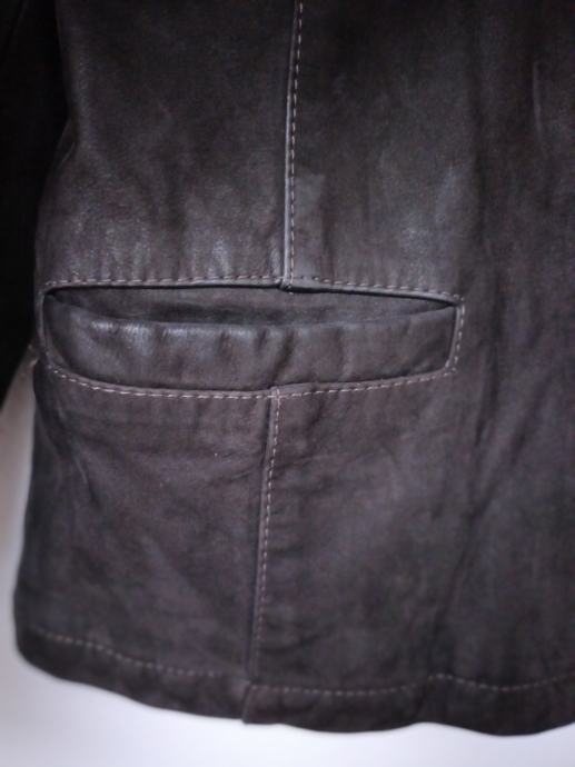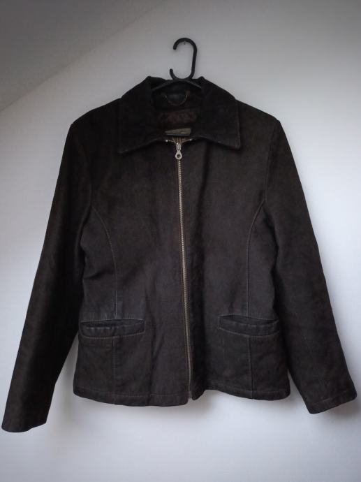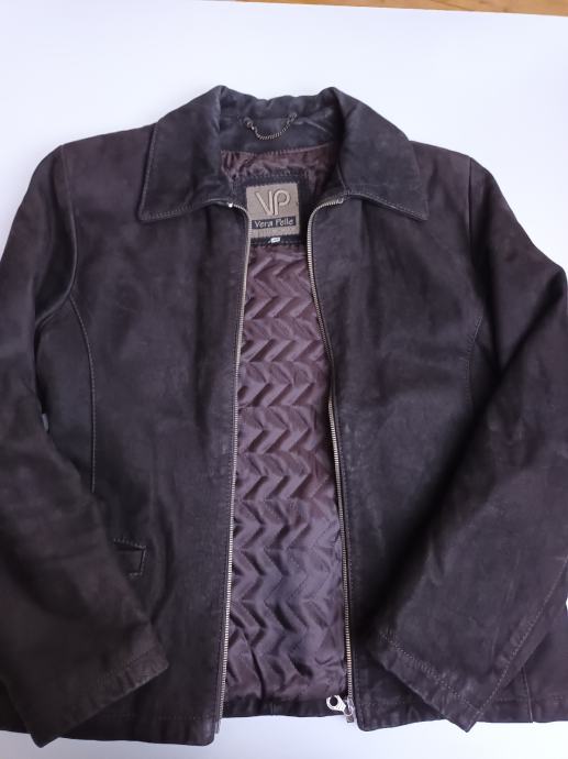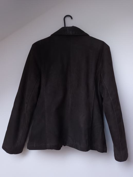 Smeđa kožna jakna 40 predivne tamne boje čokolade, kao nova made in Italy iznutra presvučena viskozom prava koža, jako lijepi model koji se može nositi i u formalnim i u casual prigodama besprijekorna duljina po sredini leđa 63cm + okovratnik 4cm, širina u ramenima 46cm od pazuha do pazuha 52cm na dne 54cm malo nošena kao nova