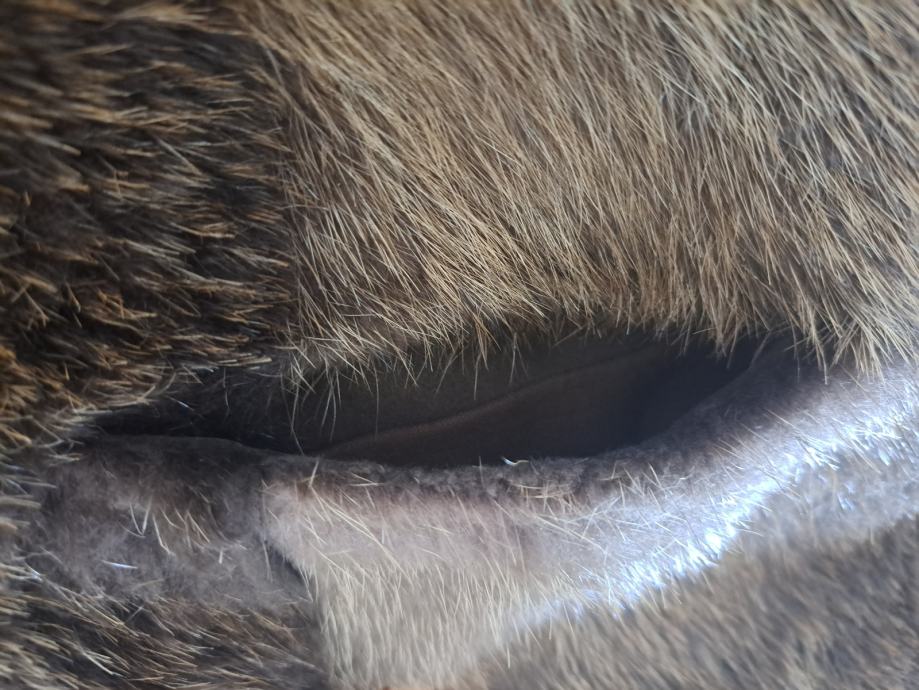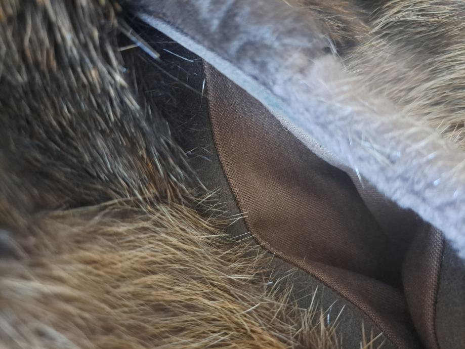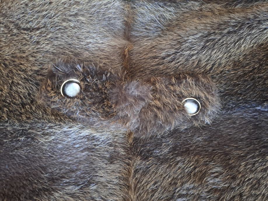 Sitna oštećenja (mjesta gdje se krzno malo razdvojilo ispod pazuha i jednog rukava) vidljiva na slikama