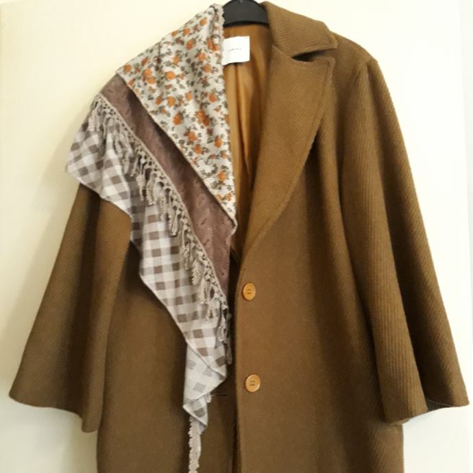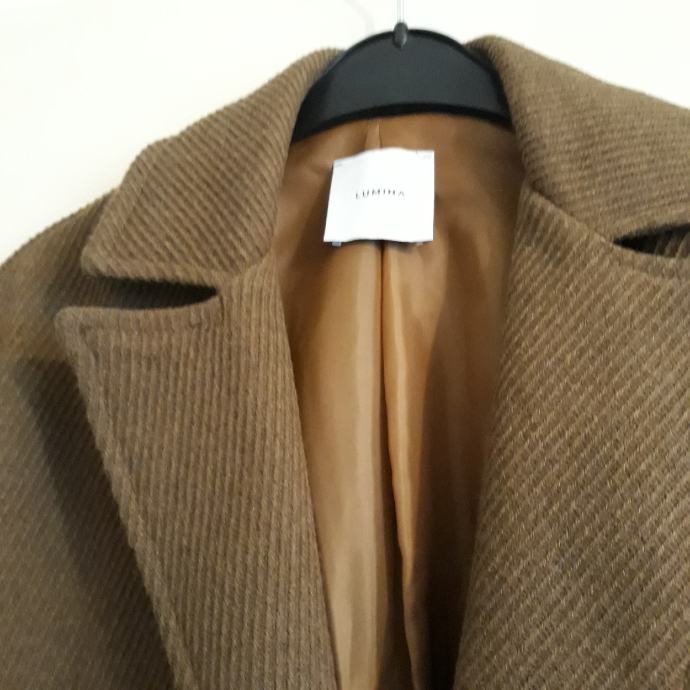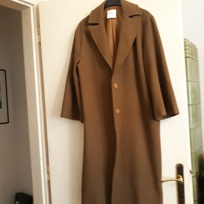 Novi smedji kaput.sastav mješavina.dug 120cm.moze obući tko nosi 40 ili 42.rukavu lagano širi prema dole.moderan i lagan za nosit.cijena povoljna.....